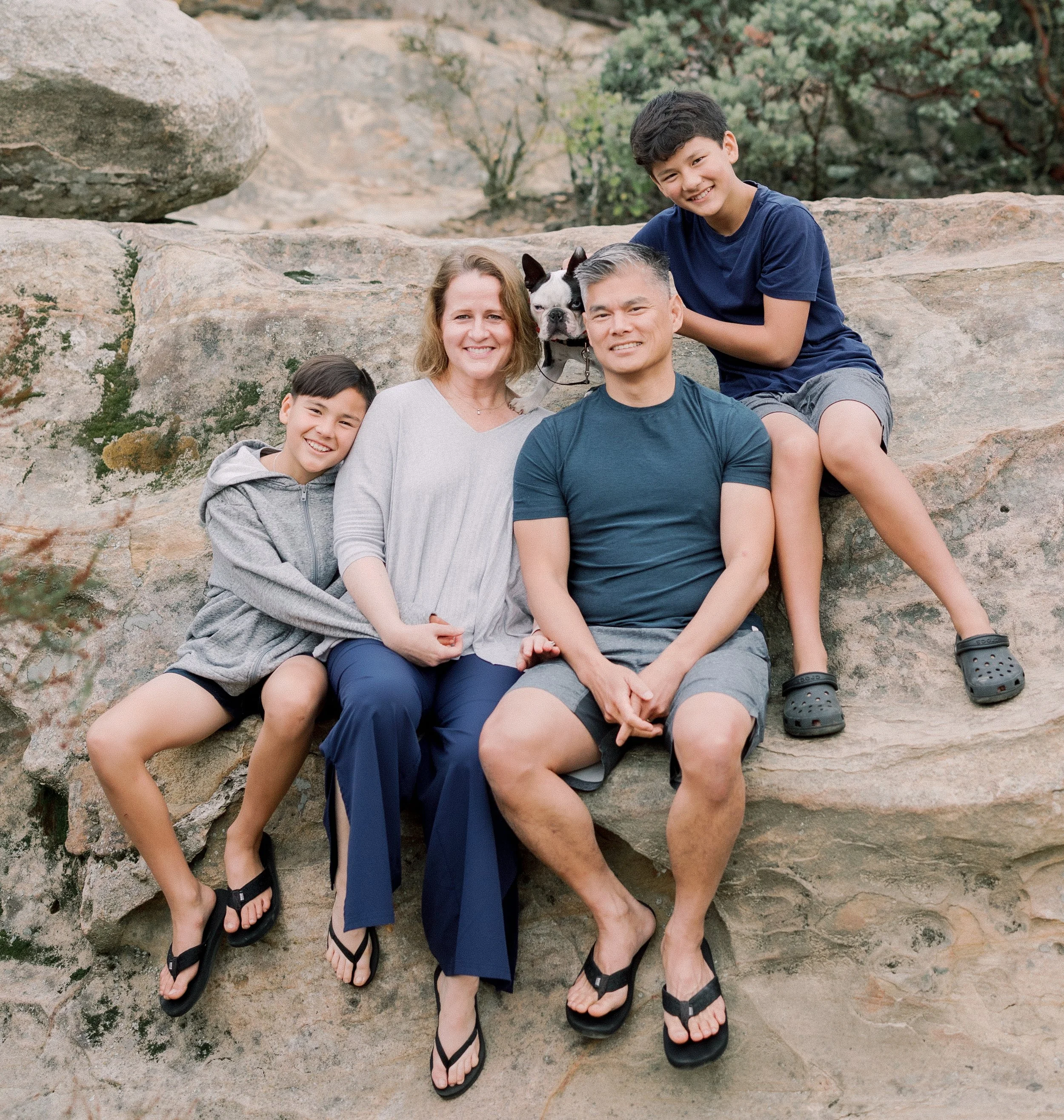 After getting her bachelor’s degree in chemistry, she began dental school at the University of California, San Francisco in the fall of 1997. She graduated in 2001 and practiced in the Bay Area before moving back to Santa Barbara in 2007 to date one of her best friends from high school, Binh Pham. He earned his bachelor’s degree in mathematics and master’s degree in statistics, both from UCSB. He spent almost eight years teaching math and coaching tennis at Bishop Garcia Diego High School, and currently teaches math and statistics at UCSB. The two married in December of 2008 and have two sons, Dax and Ty.